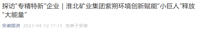 《安徽國資》:淮北礦業集團紫朔環境創新賦能“小巨人”釋放“大能量”