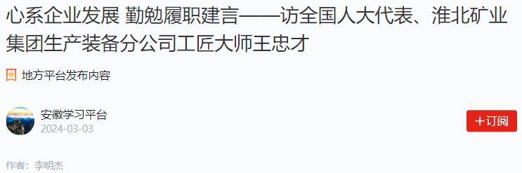 ——訪全國人大代表、淮北礦業(yè)集團(tuán)生產(chǎn)裝備分公司工匠大師王忠才