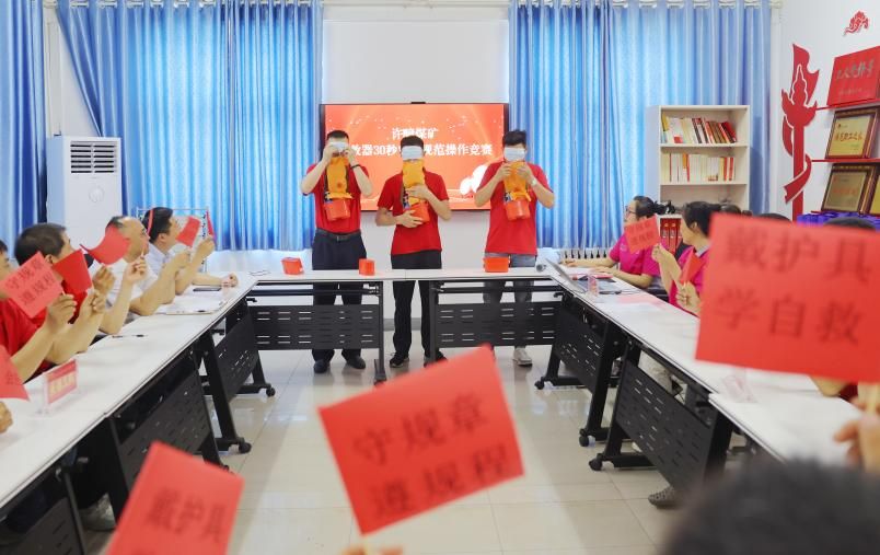 圍繞礦井安全生產中心工作,許疃礦送訓上門。“安全生產月”期間,該礦采煤系統將安全知識競賽升級為“擂臺對壘模式”,增加區隊之間互問和比拼環節,尤其是“安全隱患我查找”搶答和“自救器盲帶30秒規范操作大比拼”有獎活動,點燃了員工學習掌握安全知識、技能的熱情。
