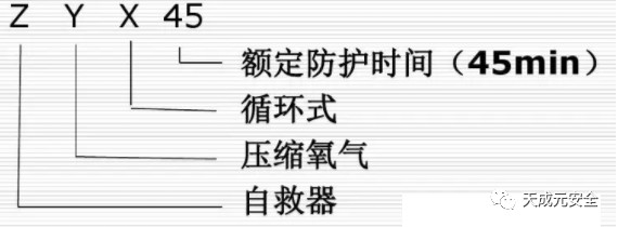 2.ZYX45隔絕式壓縮氧氣自救器型號及含義: