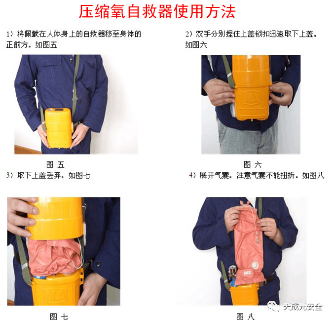 8、自救器在佩戴時氣囊補氣不能補的太飽,有半飽即可,否則造成氣囊內的氧氣排出影響防護時間。來自:天成元安全整理
