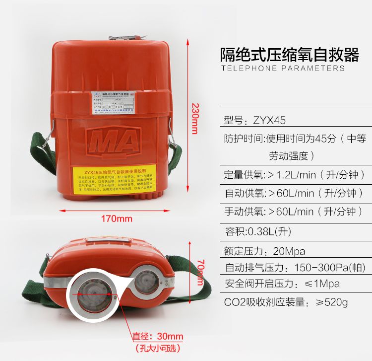ZYX45隔絕式壓縮氧自救器